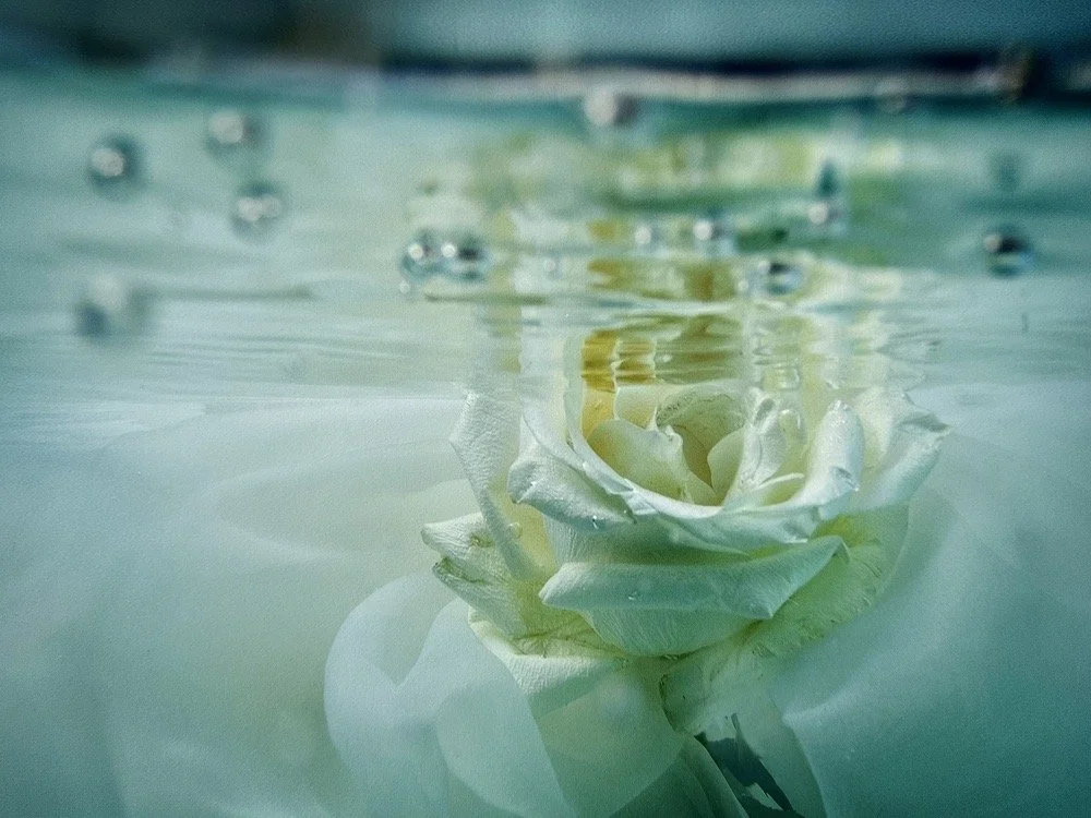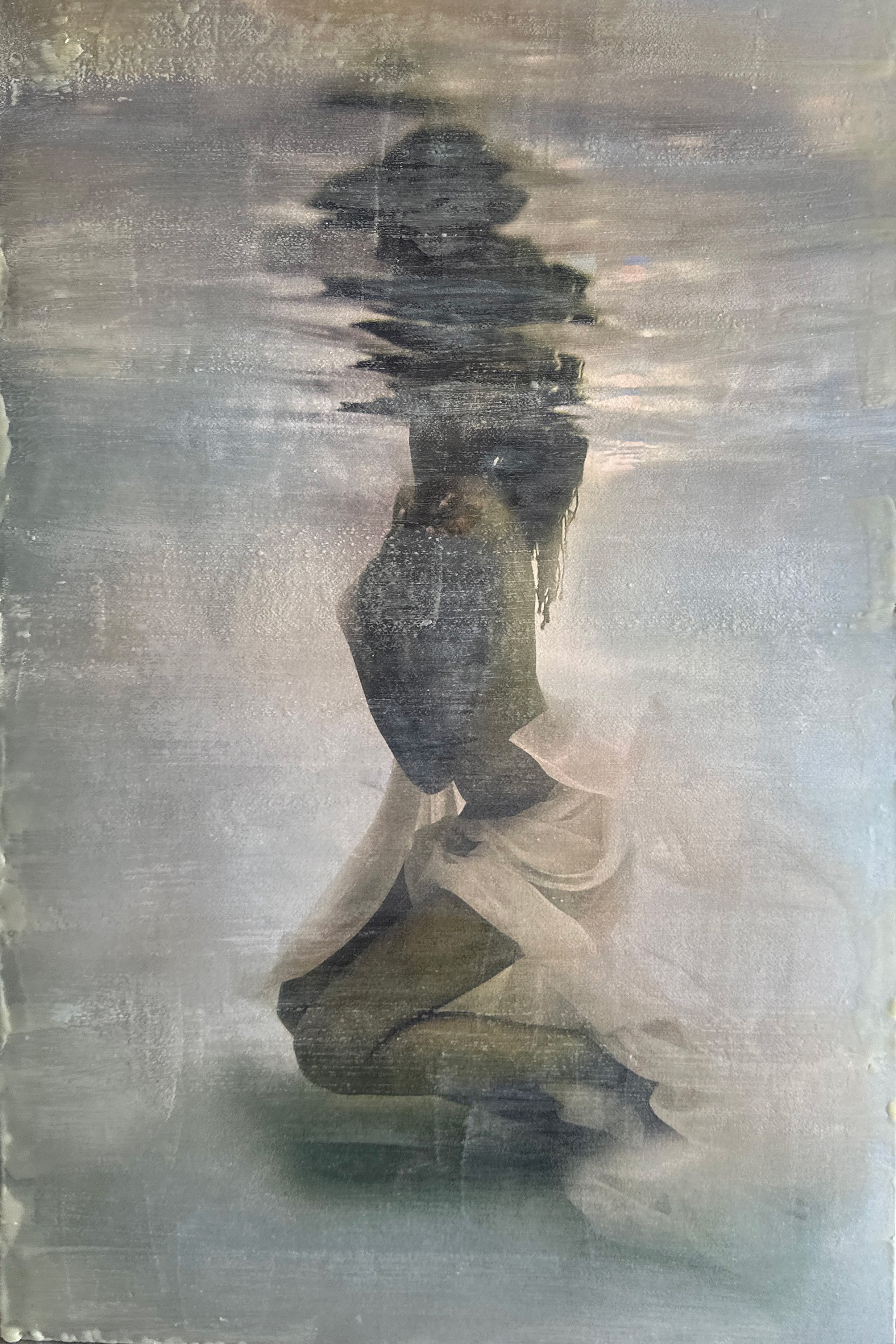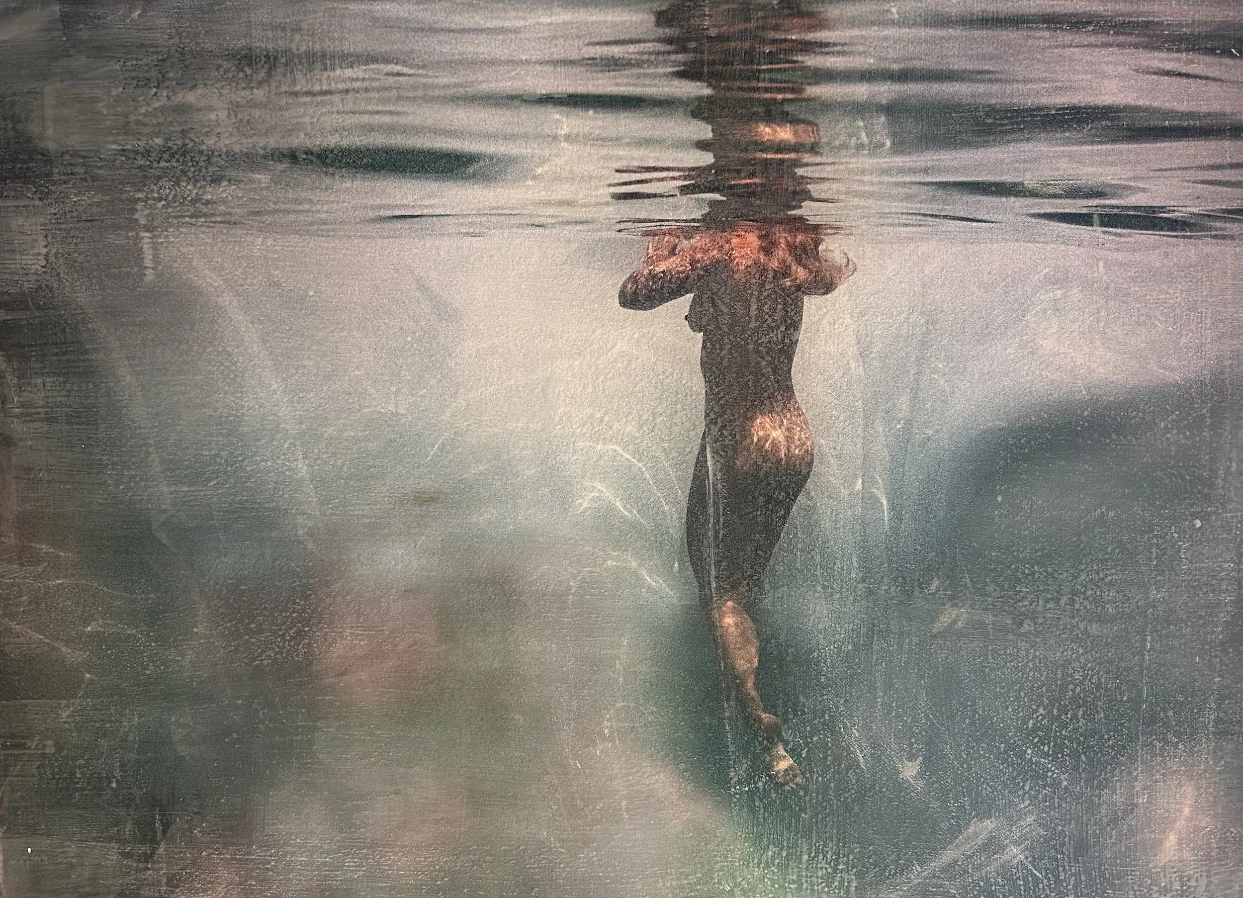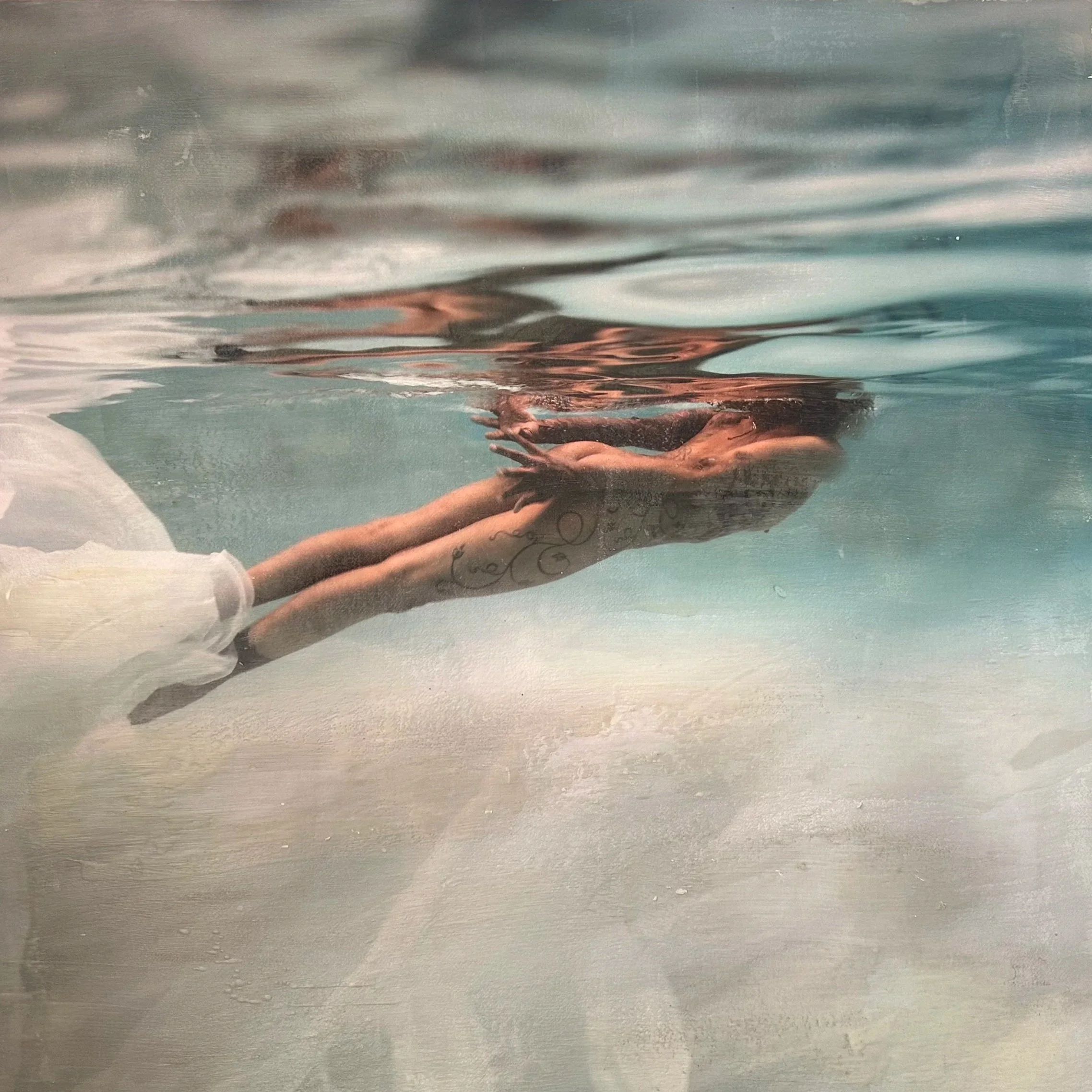 Underwater photogrsph, encaustic and mixed media on panel