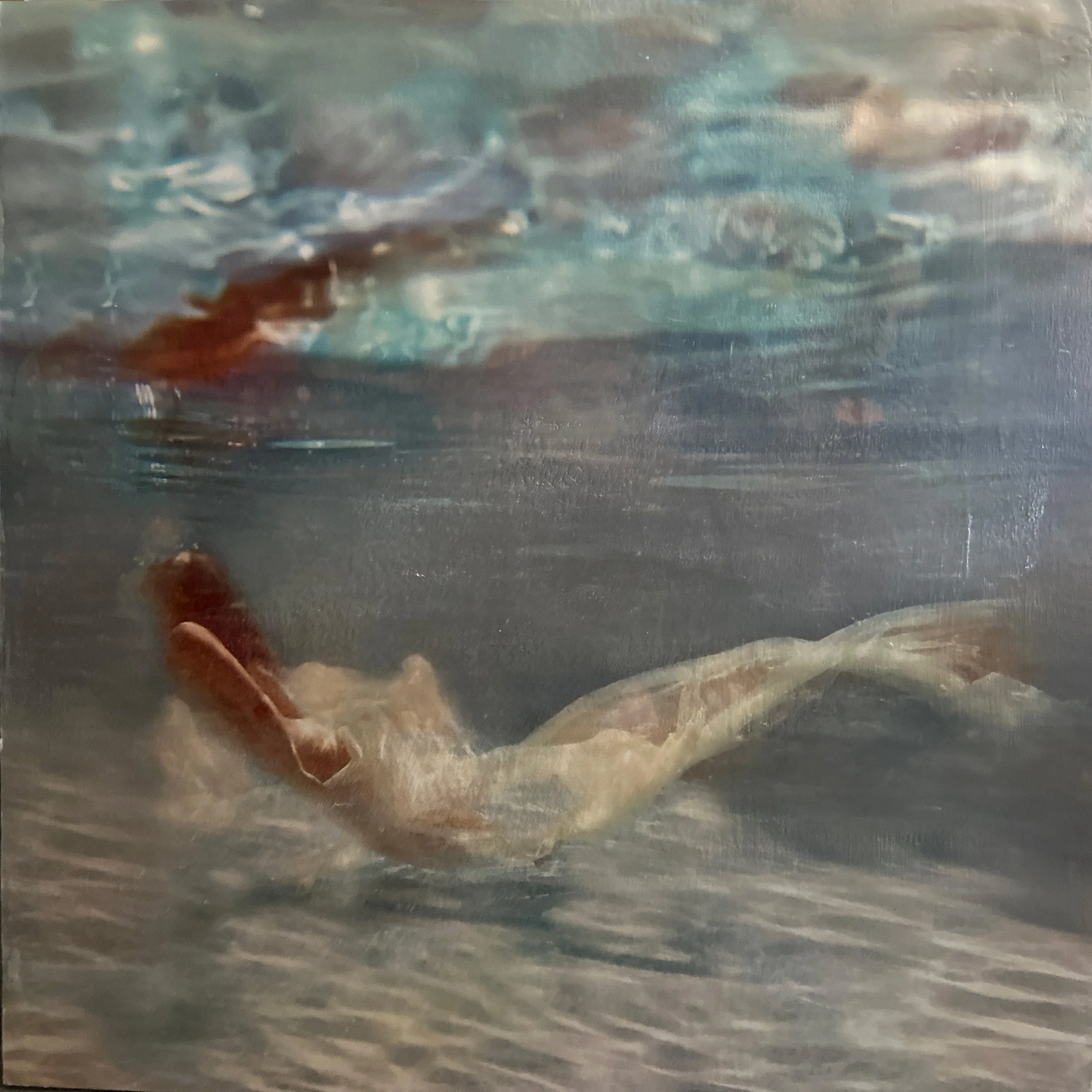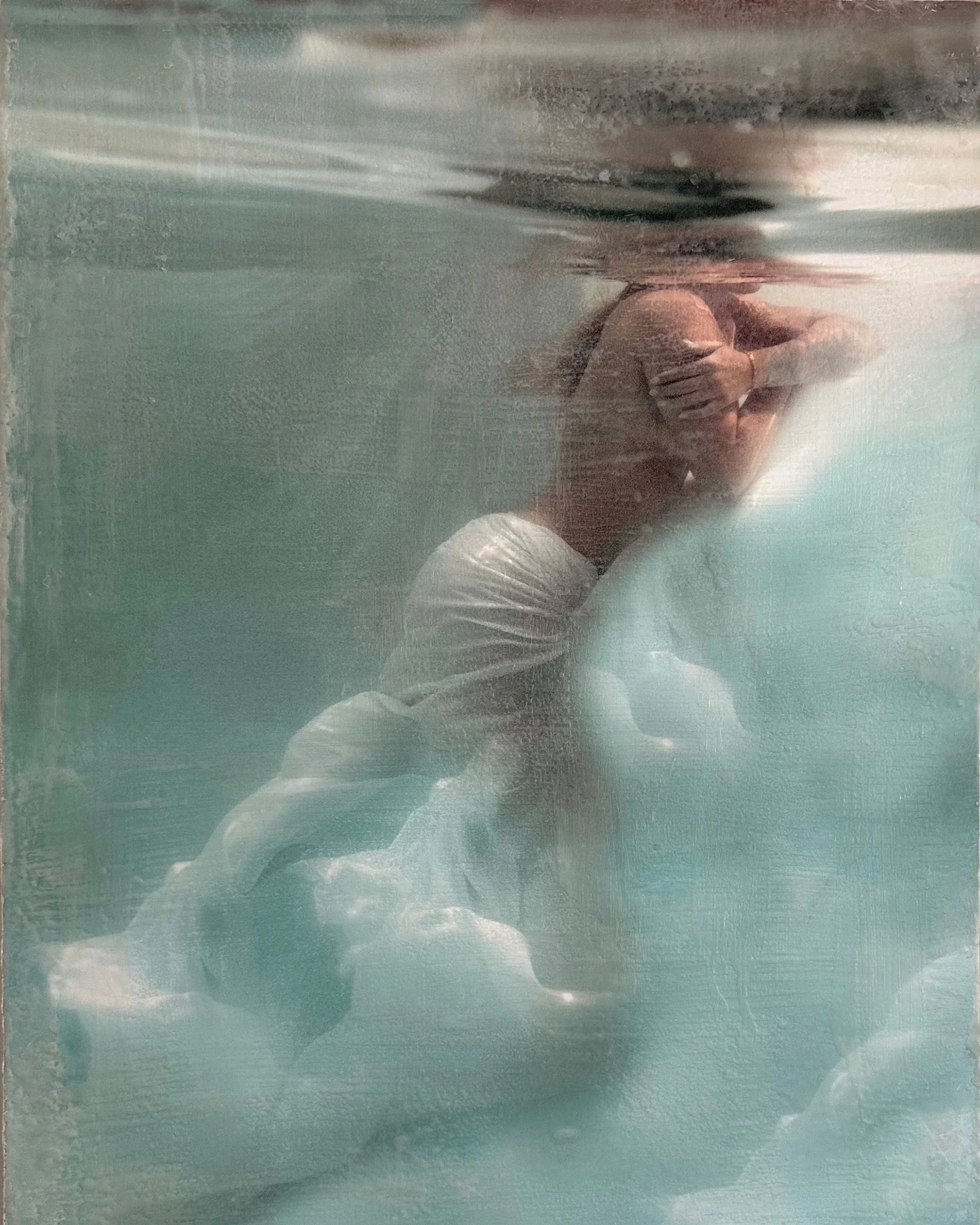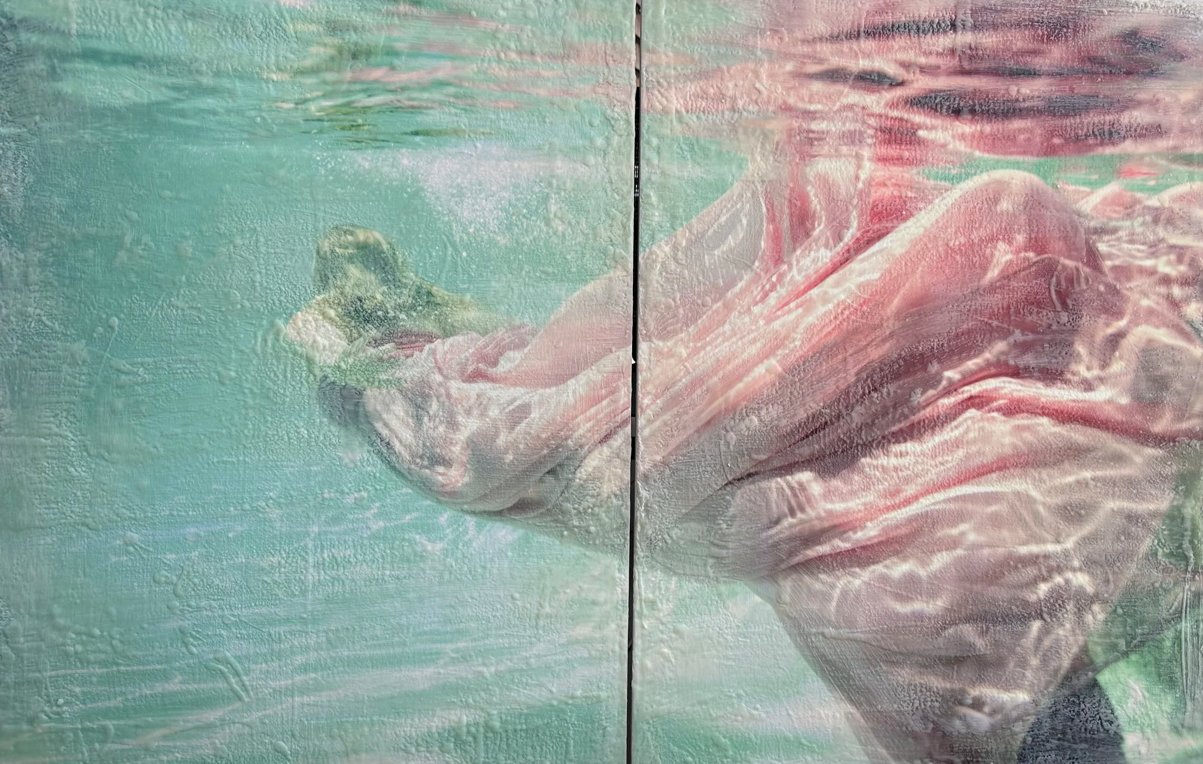 Underwater photograp, encaustic and mixed media on panel