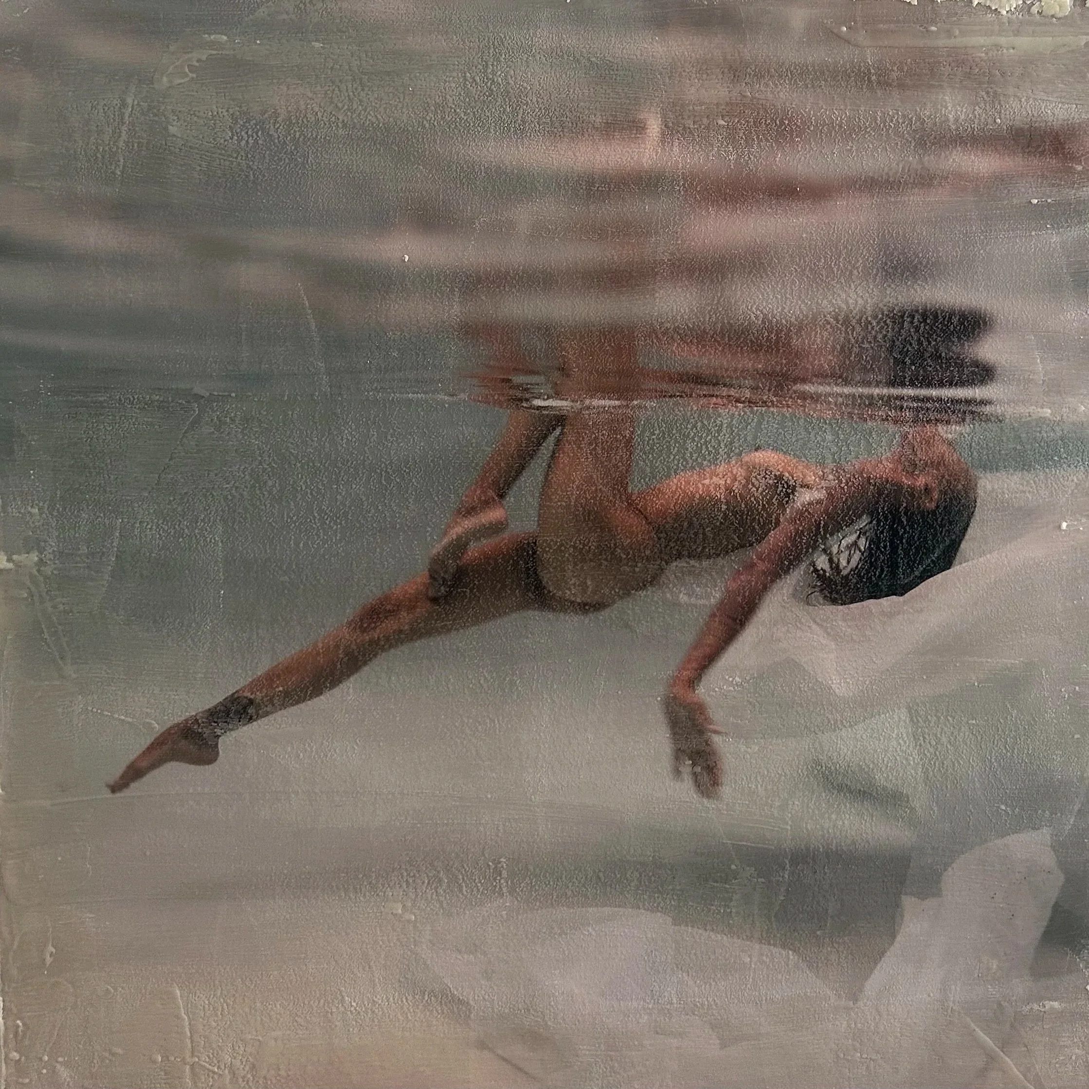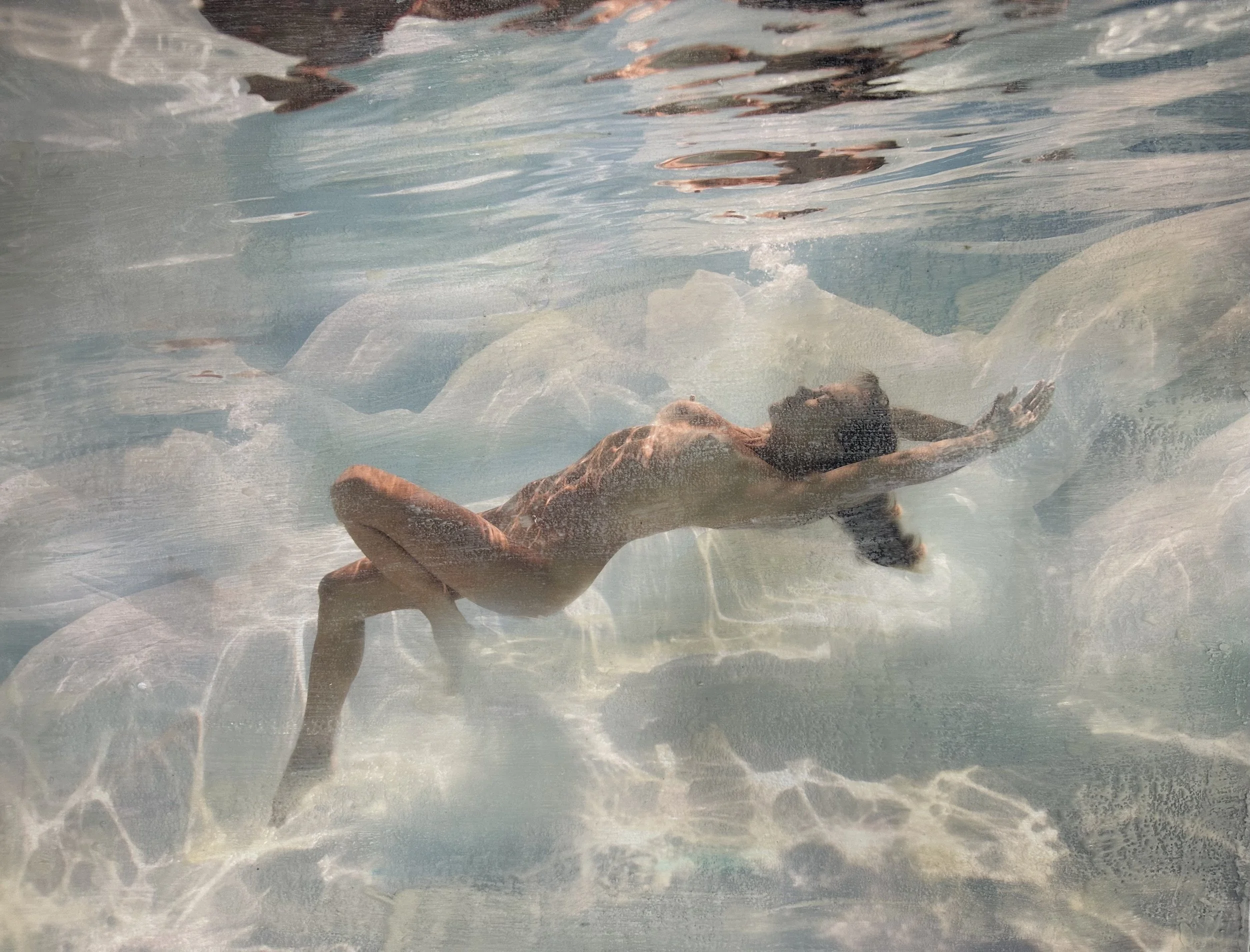 Underwater photograph, encaustic and media on panel